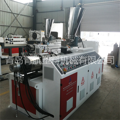 該生產(chǎn)線主要由錐型雙螺桿,模具、真空型臺(tái)、牽引機(jī)、切割機(jī)、翻料架組成。生產(chǎn)線采用自動(dòng)化控制,自動(dòng)化程度高,設(shè)備穩(wěn)定,操作簡(jiǎn)便,生產(chǎn)效率高。通過更換不同規(guī)格的模具可以生產(chǎn)多種規(guī)格、尺寸、形狀、厚度的木塑裝飾墻板,木塑墻板,快裝墻板,生態(tài)墻板。